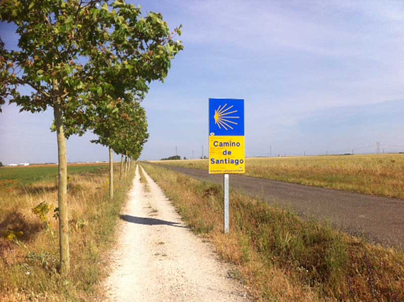 Ma semaine de marche consistait en la traversée de la Meseta, plateau entre Burgos et Léon. De longues lignes droites dans la fournaise, des kilomètres seul ou les flèches jaunes du Camino vous indiquent que vous êtes encore dans le bon sens.