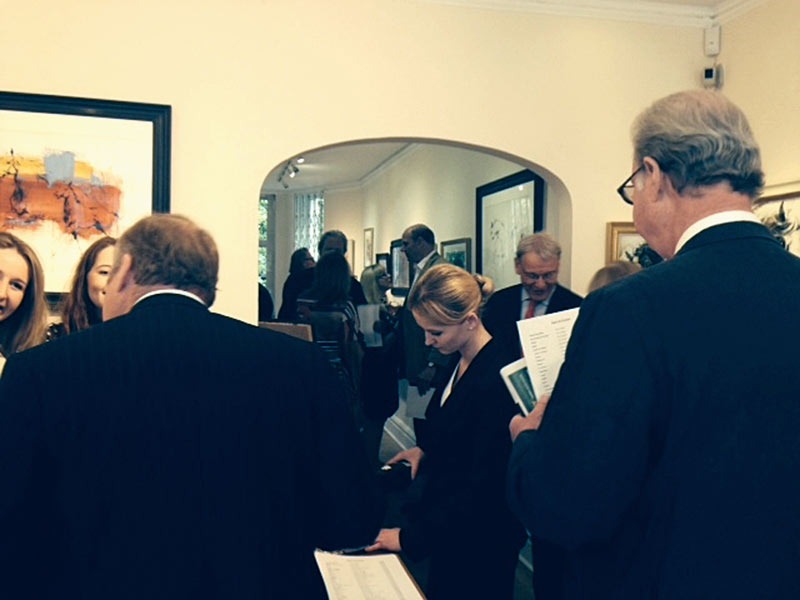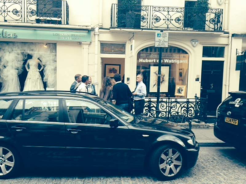 Avec un peu de retard, merci l'Eurostar, j'entre dans la galerie. Les visiteurs fidèles sont là et Geoffrey n'a pas chômé, j'aperçois que les points rouges sont déjà présents sur les cymaises.